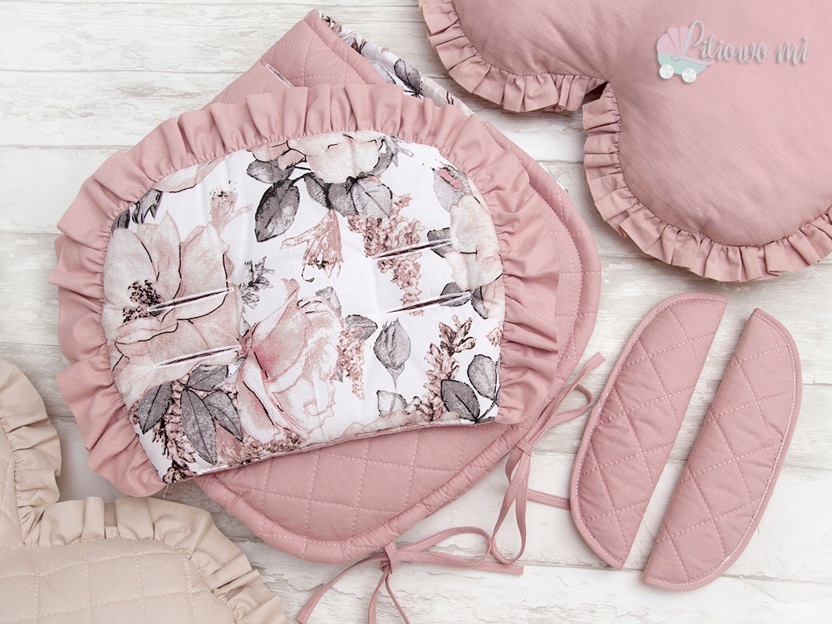 Вкладиш для коляски ДВОСТОРОННИЙ БАВОВНА + подушка з воланом + чохли на пояс