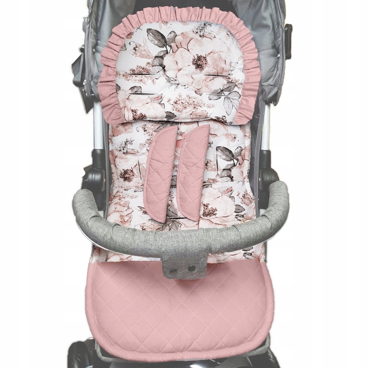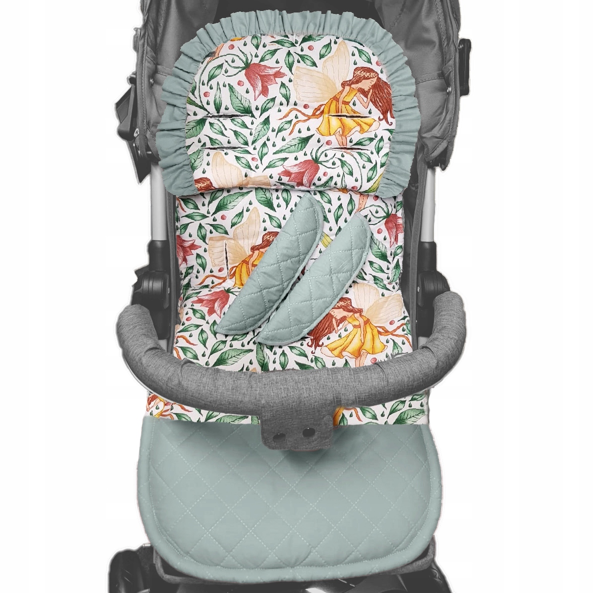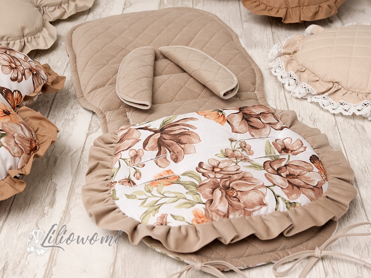 Вкладиш в коляску ДВОСТОРОННИЙ + Подушка з воланом + чохли на пояс