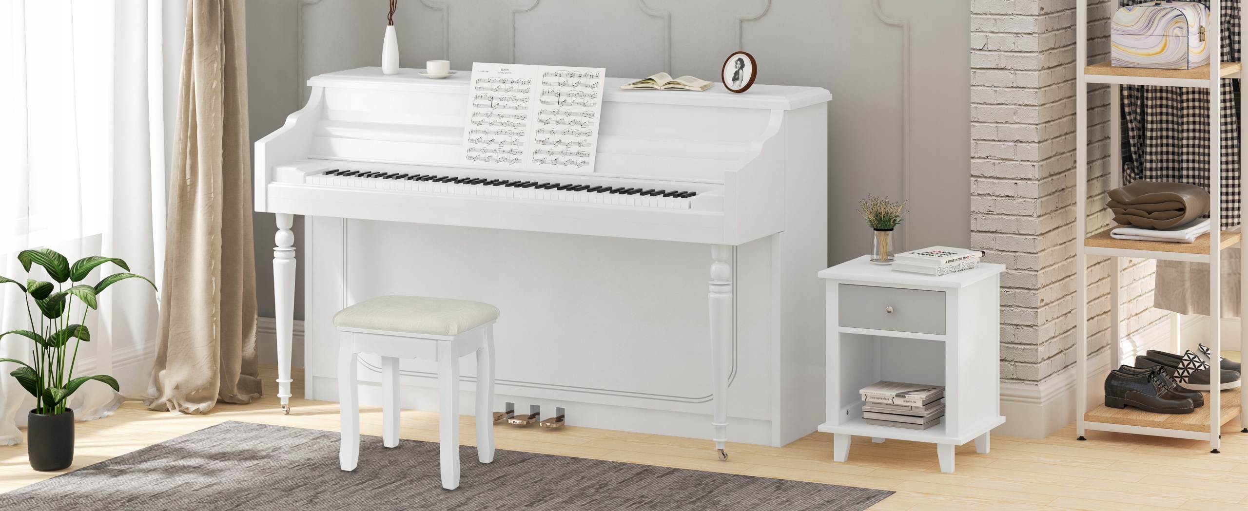 - Простий і сучасний дизайн у поєднанні з білим сидінням із класичним квітковим візерунком надає м’якому стільцю елегантний вигляд. Крім того, цей білий стілець для макіяжу також є чудовою ідеєю для подарунка.