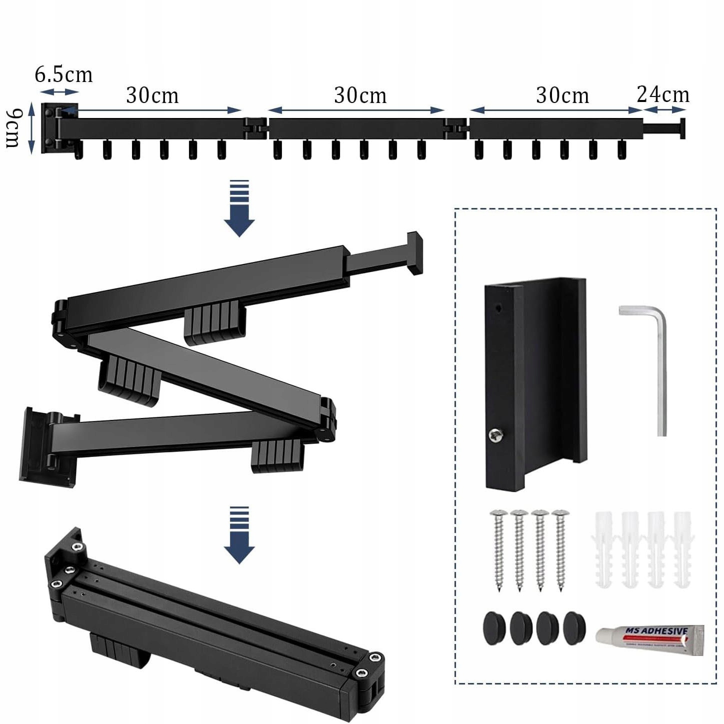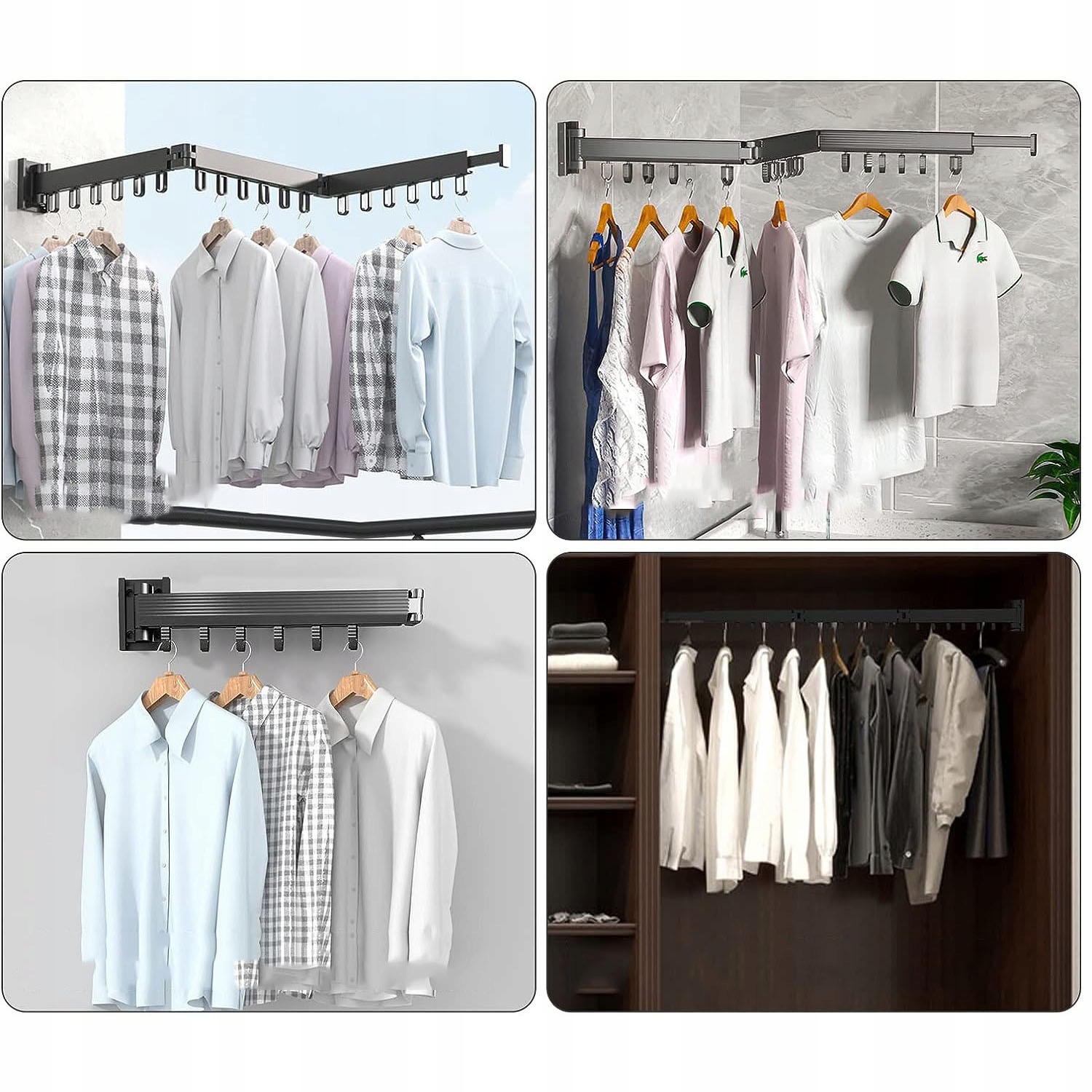 ✅Поворотний, складаний і висувний- ручки можна скласти до стіни, щоб заощадити місце. Висувну штангу на кінці можна використовувати для розвішування рушників. Складана конструкція надає цій вішалці для одягу компактні властивості. Якщо не потрібно сушити одяг, його можна скласти впритул до стіни, не займаючи місця.