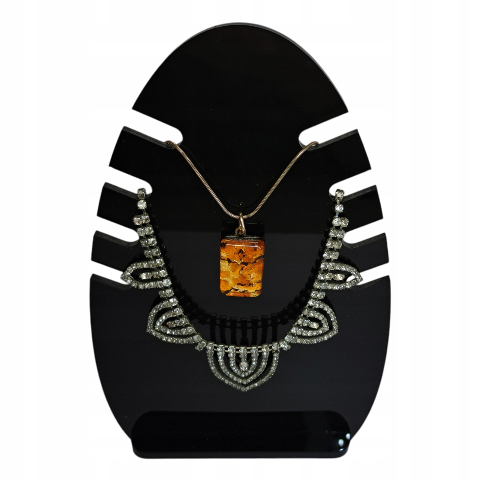 STOJAK EKSPOZYTOR NA BIŻUTERIĘ ŁAŃCUSZKI NASZYJNIK SZKŁO AKRYLOWE FerroNero