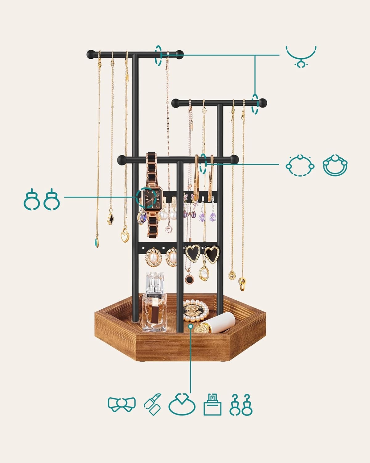 STOJAK NA BIŻUTERIĘ DRZEWKO Z METALU I DREWNA NA PIERŚCIONKI KOLCZYKI