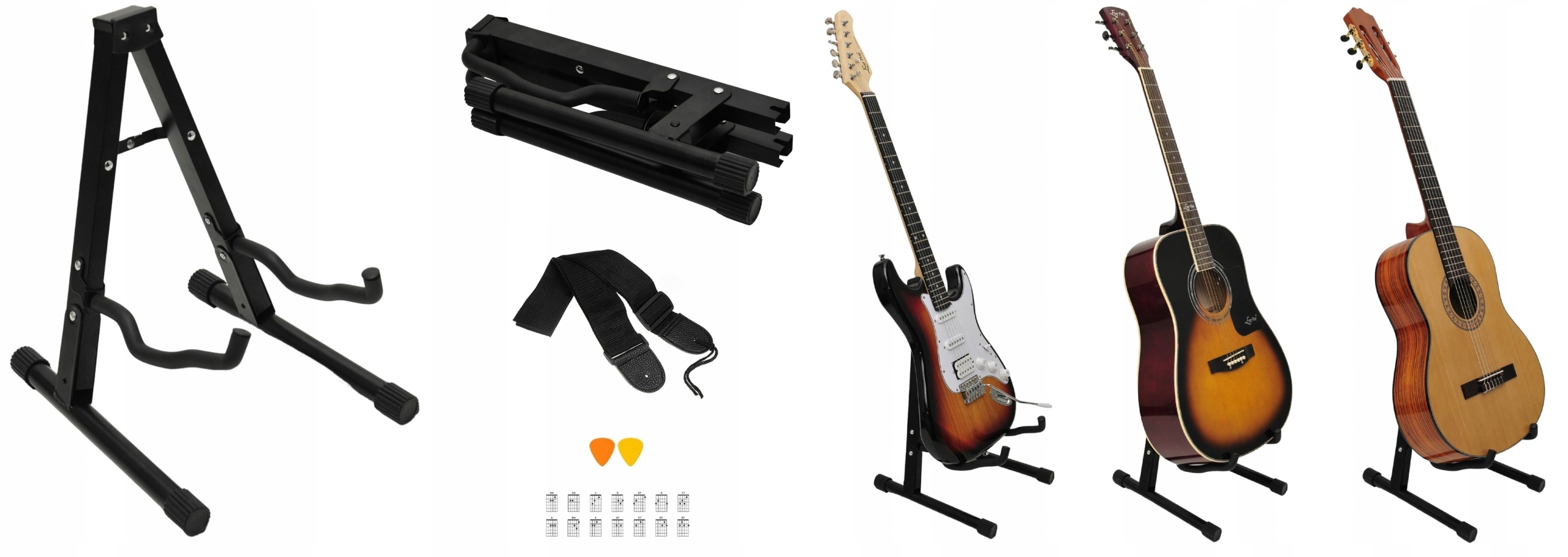 STOJAK NA GITARĘ, SKŁADANY / STATYW GITAROWY + PASEK + GRATISY - PROMO