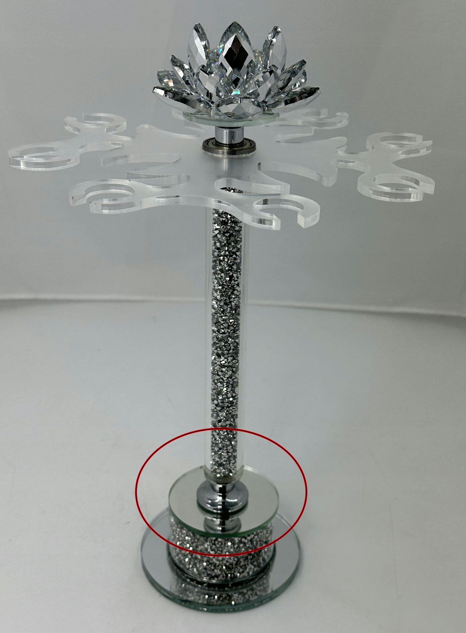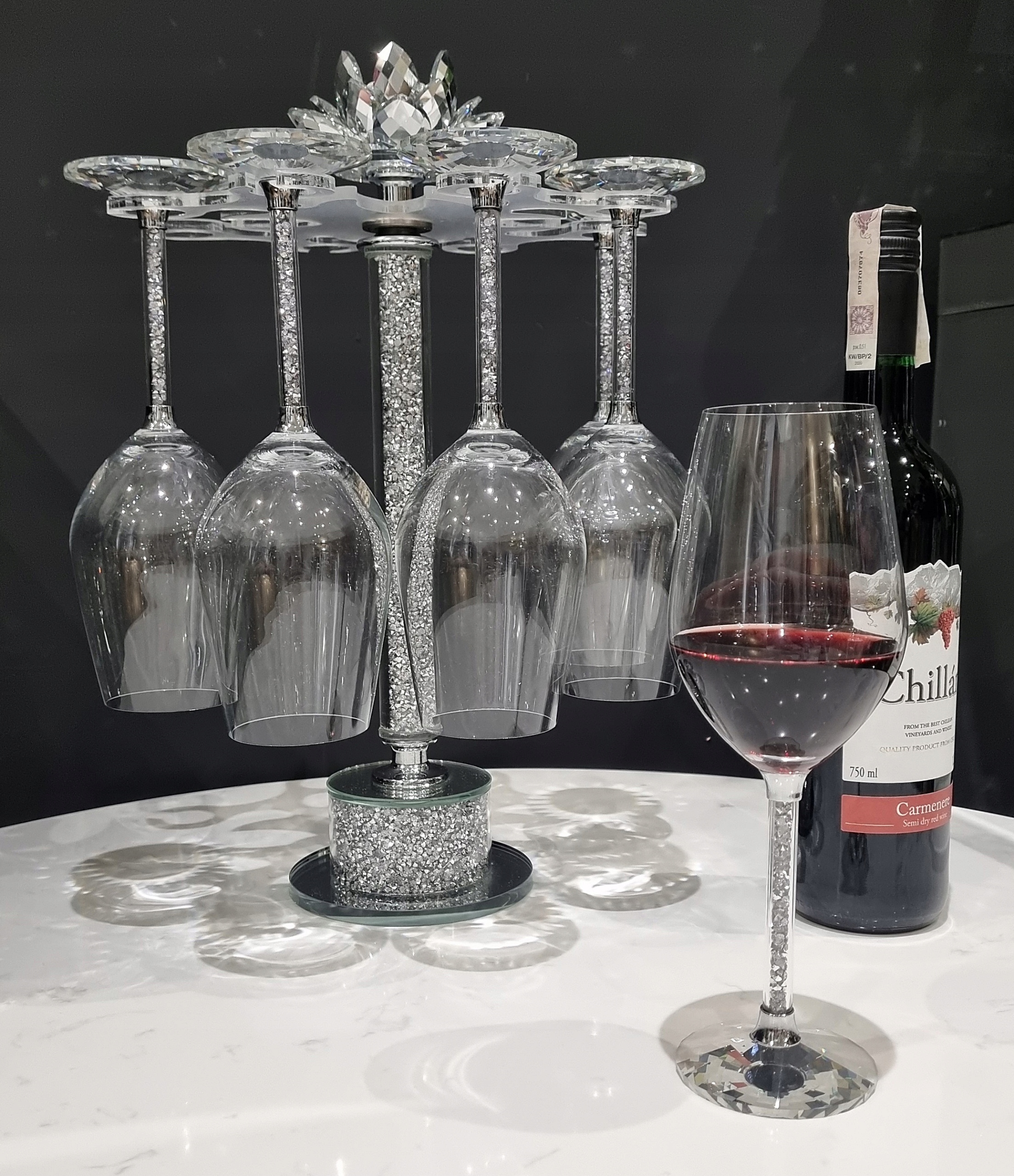 Підставка для бокалів — ідеальна ідея для їх зберігання, а також чудова гламурна прикраса для кухні, вітальні або їдальня. Виготовлений з високоякісного скла. Ніжка та основа, рясно наповнена кристалами, є унікальним ефектом інтер'єру.