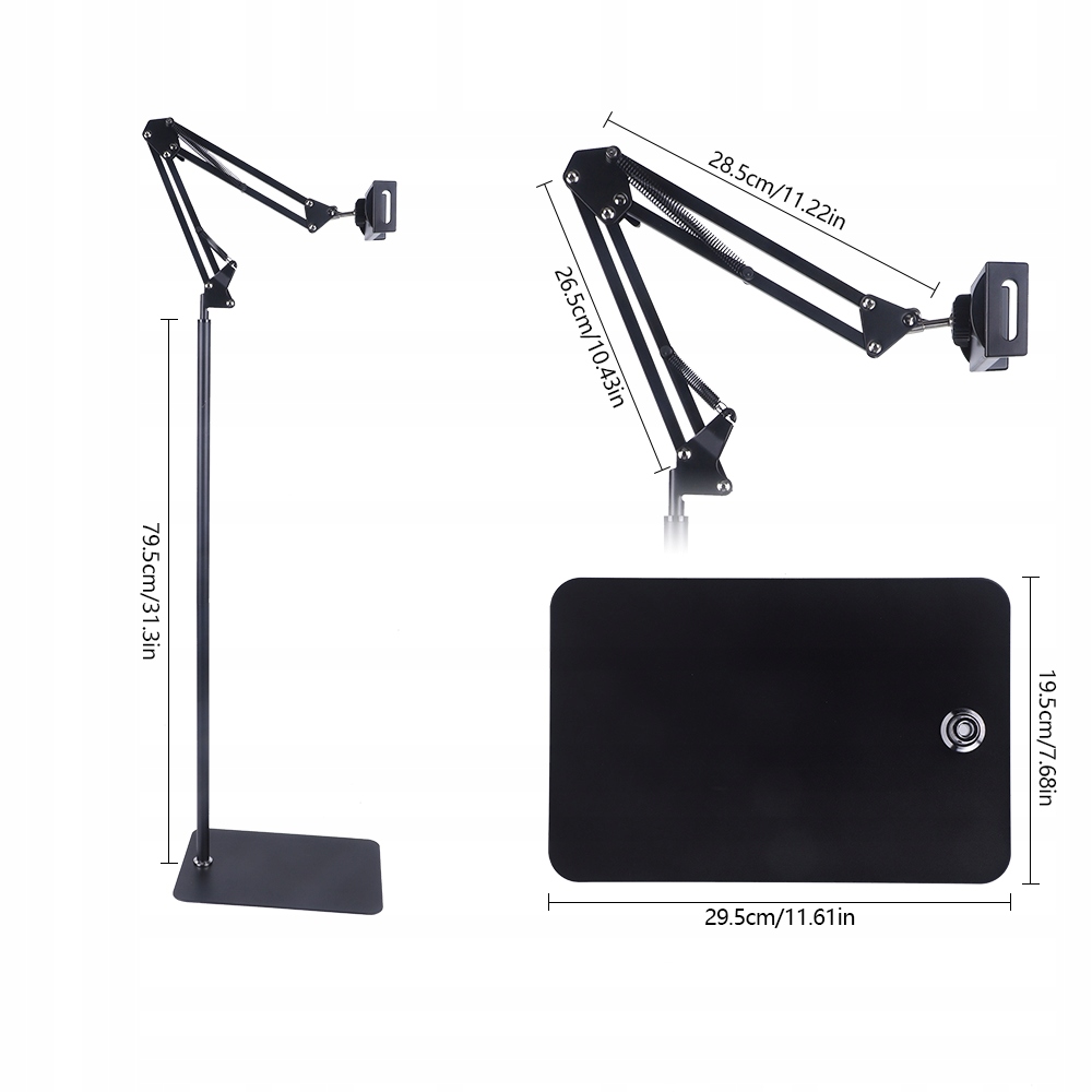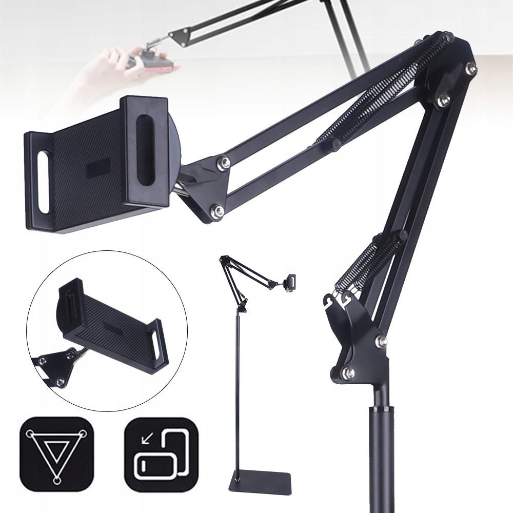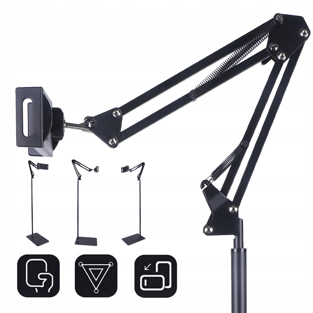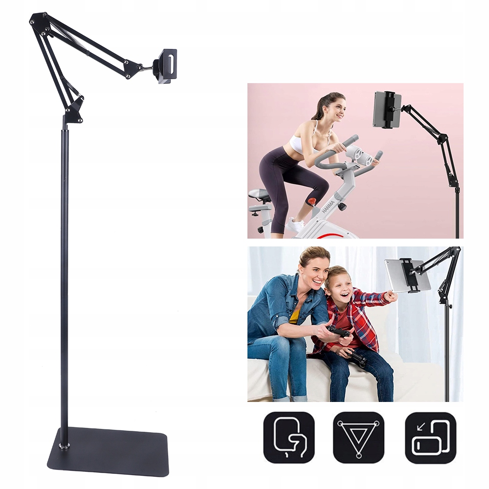 STOJAK PODŁOGOWY DO TABLETU REGULOWANY UCHWYT NA TELEFON DO TABLETU CZARNY