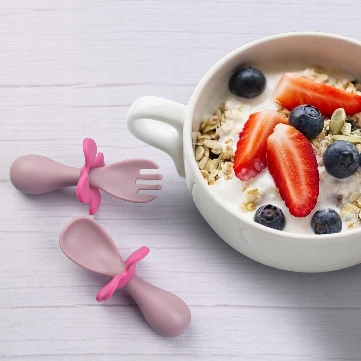【дитяча ложка】 - миска для ложки кругла і гладка. Однак ви можете відрізати деякі банани чи інші подібні фрукти. Глибокі ложки та миски полегшують виливати їжу та рідини. Глибокі ложки можна використовувати для супів та вівсяної каші. Це ідеальна ювелірна прикраса для немовлят та дітей.