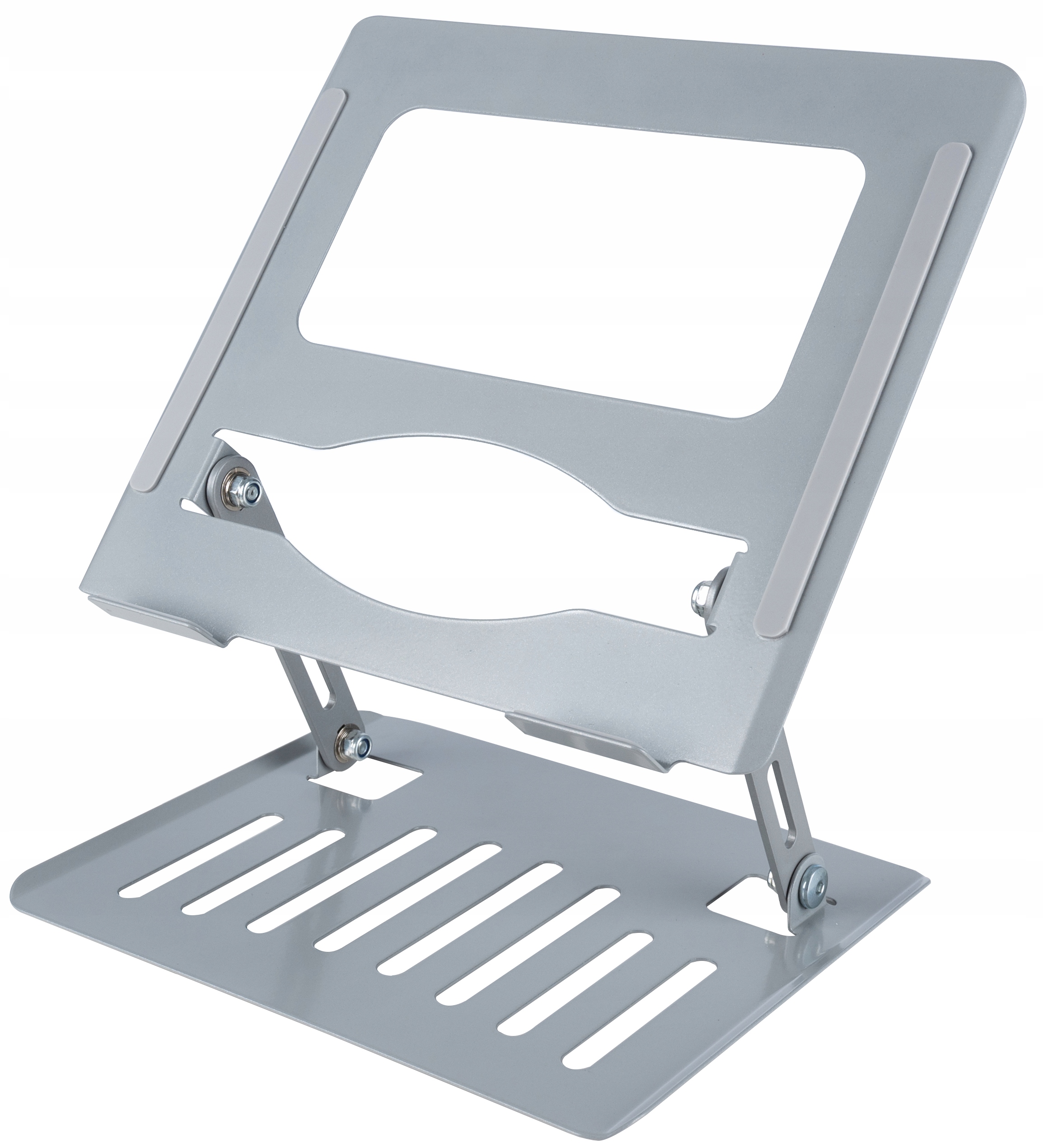 Стійка має регульований кут нахилу та великі отвори, що забезпечують потік повітря.