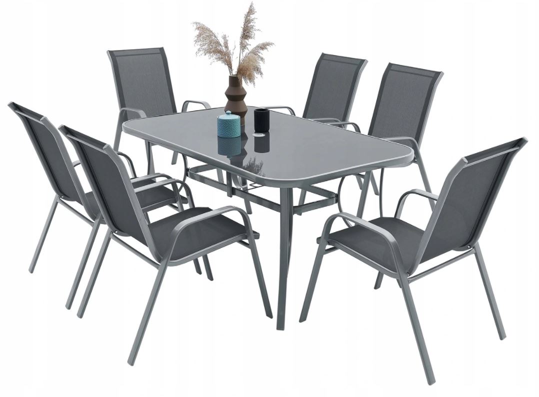 Садовий стіл ідеально підходить для вашого саду. Рама має подвійне порошкове покриття, що робить цей виріб ідеальним як для внутрішнього, так і зовнішнього використання. Використані матеріали не вимагають частого догляду, стійкі до погодних умов і не потребують спеціальних засобів догляду. Ніжки додатково оснащені пластиковими ковпаками.Столик має стільницю з прозорого загартованого скла. 5 мм, з отвором для садової парасольки.