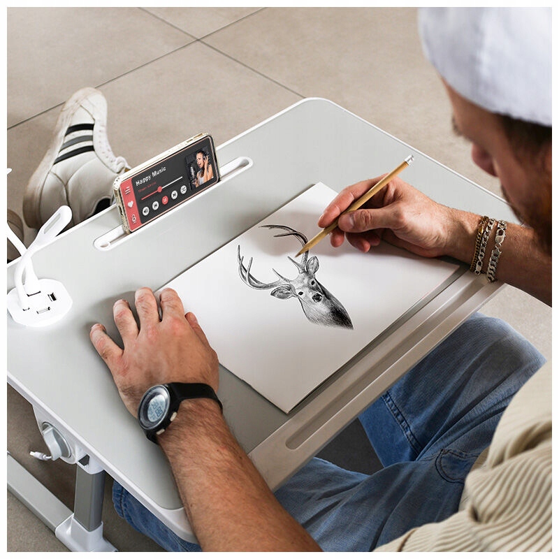 Завдяки регулюванню висоти стіл ідеально підходить як дорослим, так і дітям. Не встаючи з ліжка, діти можуть комфортно дивитися фільми, грати, малювати, вчитися і робити уроки за столом.