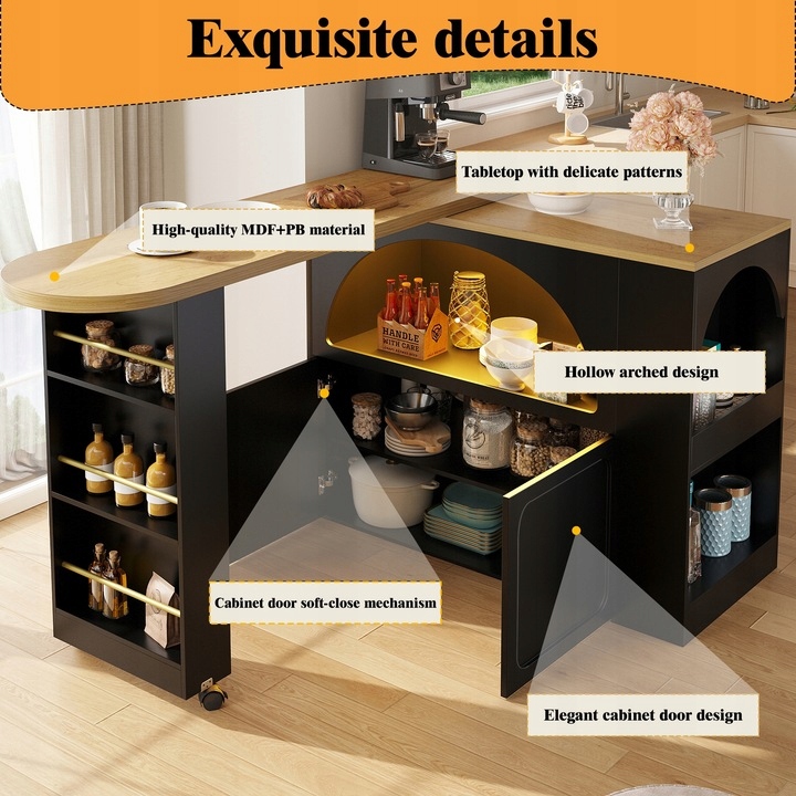 Вишукані деталі та елегантний дизайн: стільниця з декоративним малюнком, елегантні дверцята шафи та арочна конструкція надають йому сучасного вигляду. Це естетична прикраса вітальні чи кухні, яка приверне увагу.