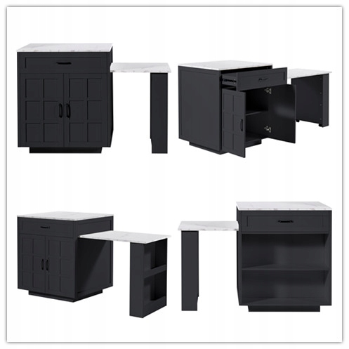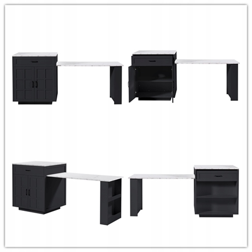 Багатофункціональний простір для зберігання: Шафна частина кухонного острова має кілька відкритих відділень і один висувний ящик, що забезпечує багато місця для зберігання, що полегшує організацію та зберігання предметів, задовольняючи різноманітні потреби. Збоку також є полиця для спецій, що забезпечує зручний і гнучкий доступ.