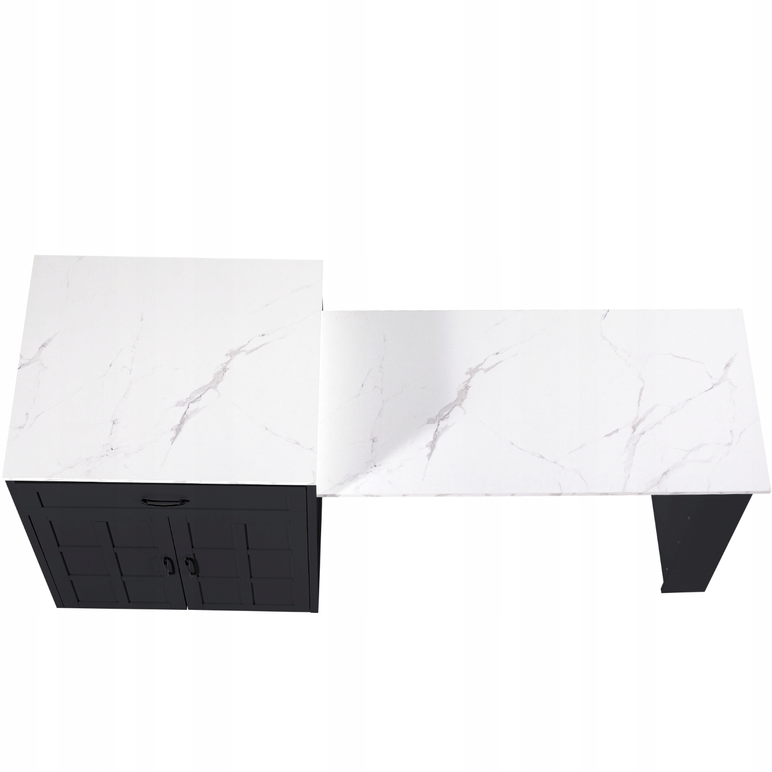 Високоякісна МДФ плита та міцна фурнітура: Ця барна стійка виготовлена з високоякісної МДФ плити. Стільниця з фактурою мармуру не тільки красива і елегантна, але й забезпечує міцність і стійкість, завдяки чому стіл прослужить довго. Використання високоякісних петель і ручок зі сплаву цинку гарантує довговічність і безперебійну роботу столу, подовжуючи термін його служби.