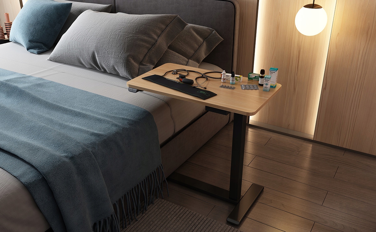Завдяки правильному дизайну електрорегульований столик Spacetronik Buddy може ставитися поверх ліжка чи крісла.