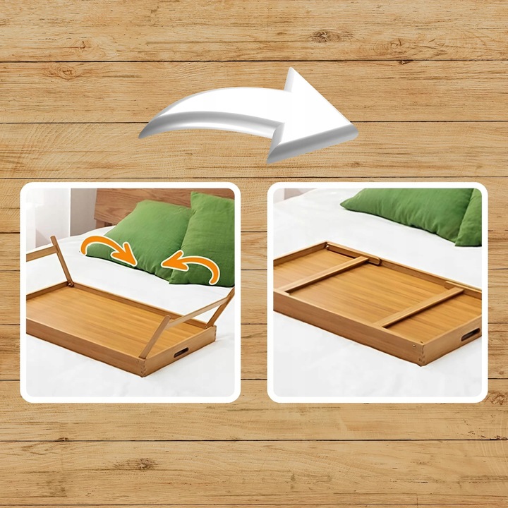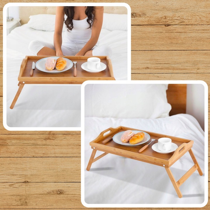 Стільниця розміром 50 x 27 см забезпечує достатньо місця для сніданку, обіду чи вечері, що робить її ідеальною для подачі їжі в ліжко або на диван.