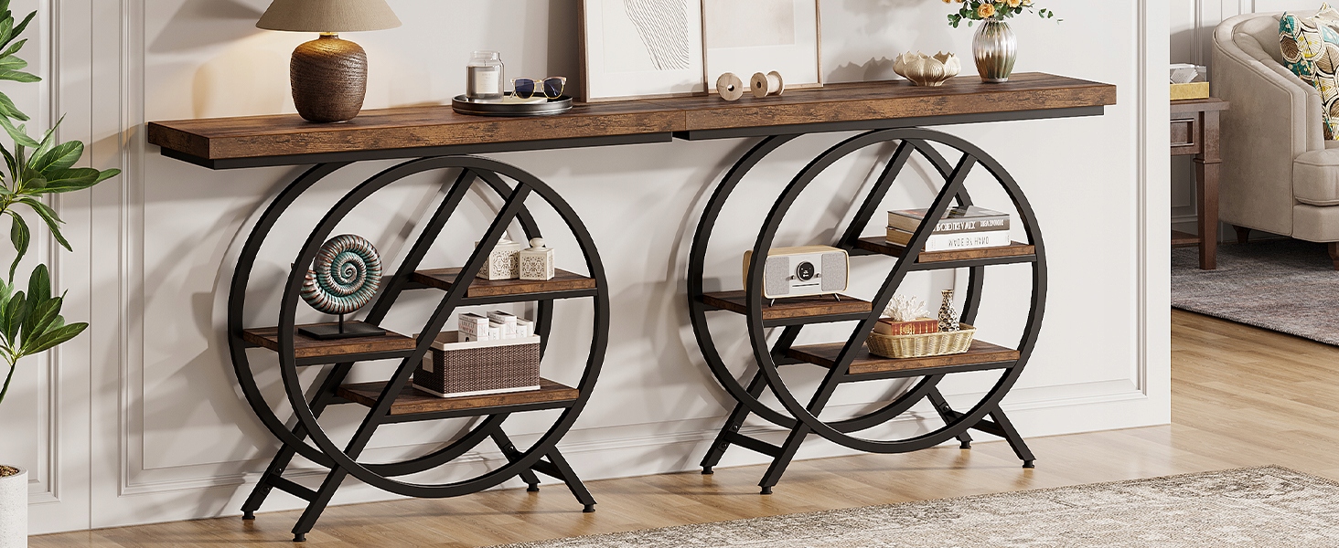 Консольний стіл, 100 см. Стіл вхідний промисловий 4-ярусний