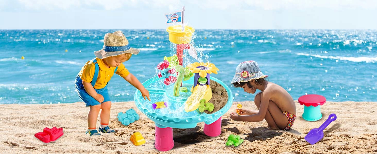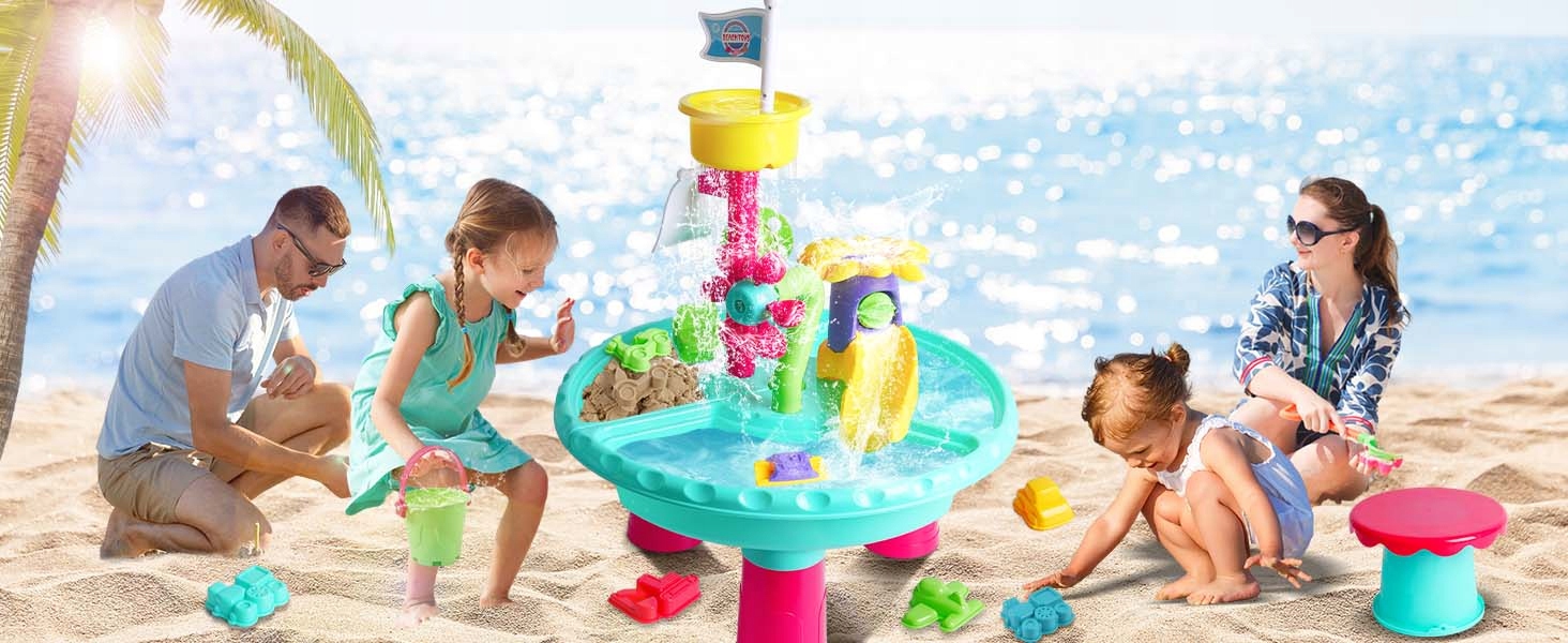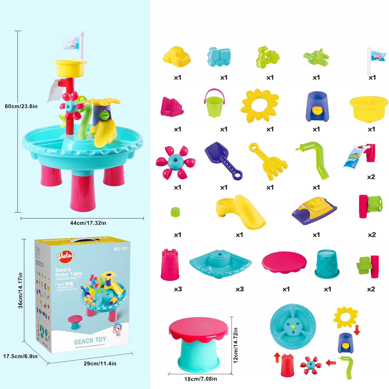 STOLIK WODNY PIASKOWNICA STÓŁ 3w1 31szt DLA DZIECI WIADERKO ZABAWKI PLAŻOWE