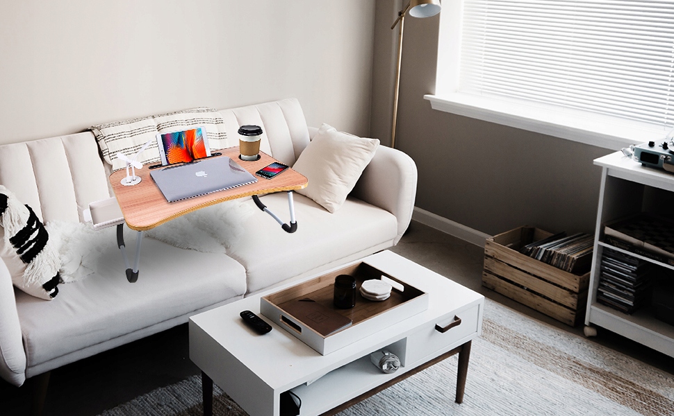 Завдяки йому ви досягнете небувалого комфорту під час роботи та гри на своєму ноутбуці! Крім того, стіл можна використовувати як столик для сніданку в спальні. Також можна використовувати для читання книг і як дитячий куточок. Оснащений додатковим тримачем для планшета та підставкою під чашку.