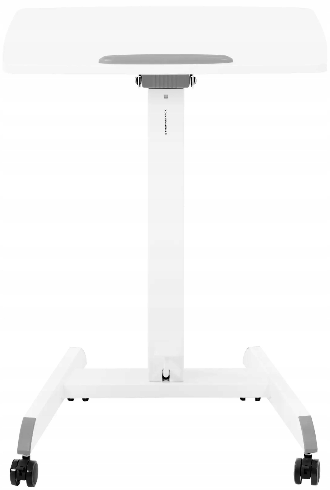 Столик для ноутбука має простору стільницю розміром 60 x 52 см, яка забезпечує достатньо місця для великих ноутбуків або проекторів. Для оптимальної робочої пози висоту можна легко регулювати від 825 до 1185 мм. Стабільна конструкція із сталевих труб із покриттям і стільниця товщиною 16 мм гарантують вантажопідйомність до 8 кг. Чотири колеса, за допомогою яких ви можете переміщати столик для ноутбука в будь-яке місце, забезпечують максимальну мобільність.
