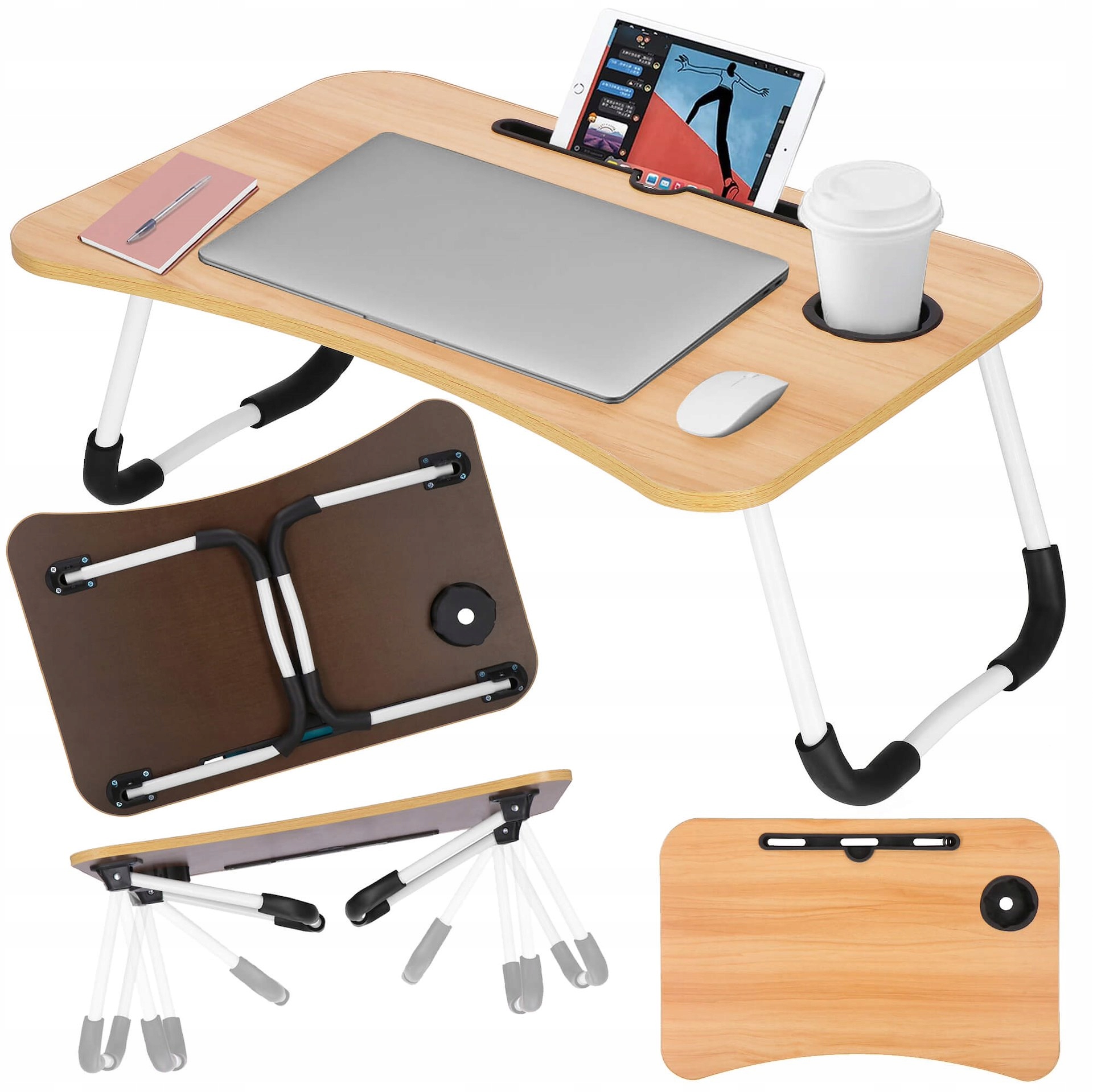 Таблиця для ноутбука з просторим верхом була оснащена спеціальним планшетом/телефоном, , в якому ви можете легко поставити пристрій вертикально, без страху падіння або падіння перед неантизованим наливанням рідини на стояти далі.