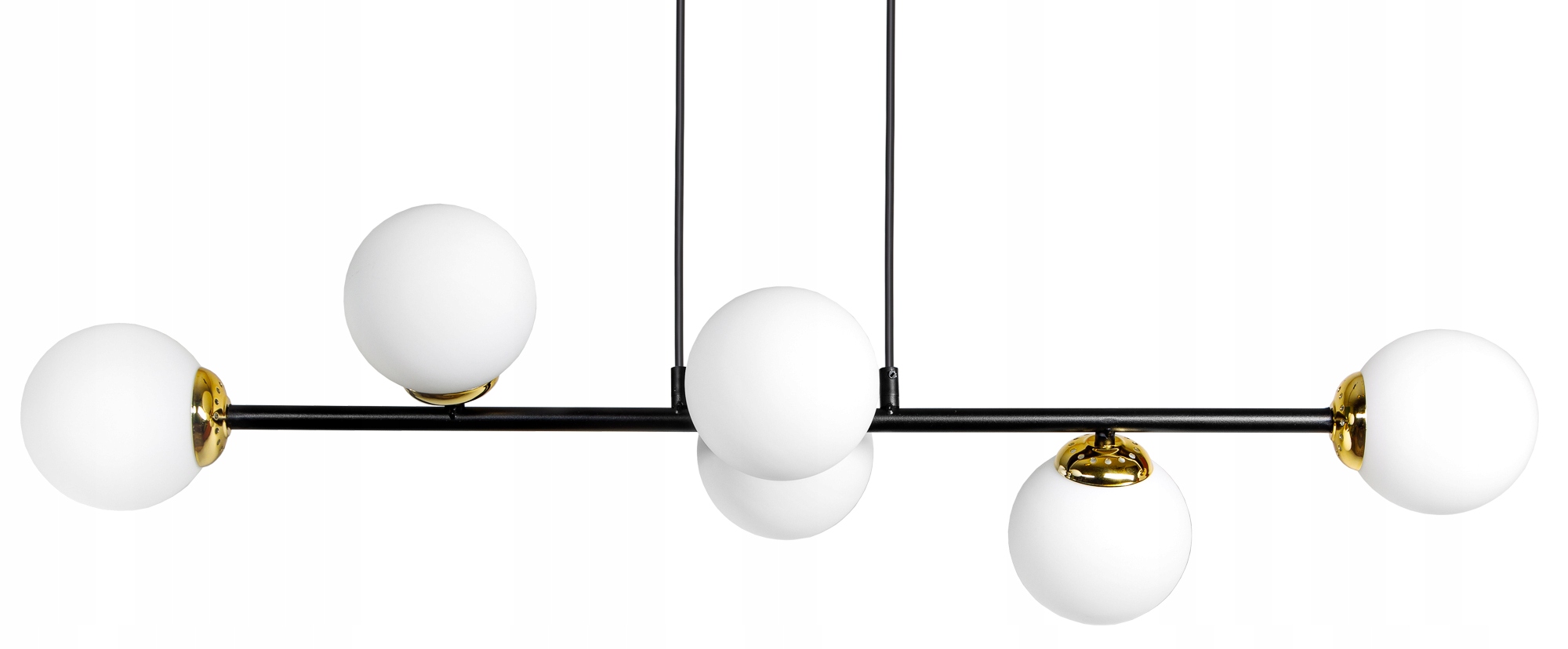 Сучасний стельовий світильник - чорна люстра з золотими акцентами. Білі кулькові абажури. Дизайнерський стиль, який ідеально впишеться у ваш інтер'єр.