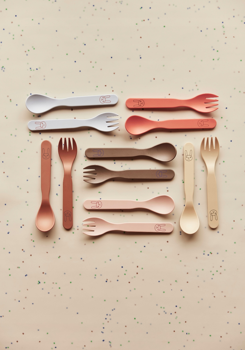 СТОЛОВІ ПРИБОРИ ДЛЯ ДІТЕЙ НАБІР ЧАЙНА ЛОЖКА ТА ВИЛКА ЕКО ПЛАСТИК КРЕМОВІ OYOY