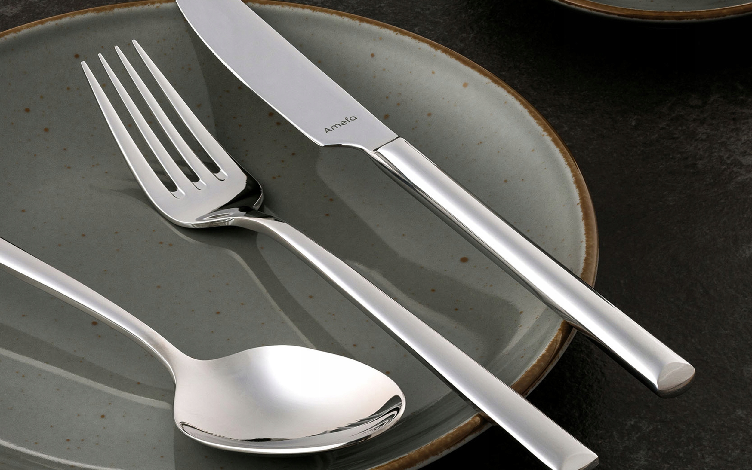 Високоякісні столові прибори з нержавіючої сталі в оригінальній коробці виробника.