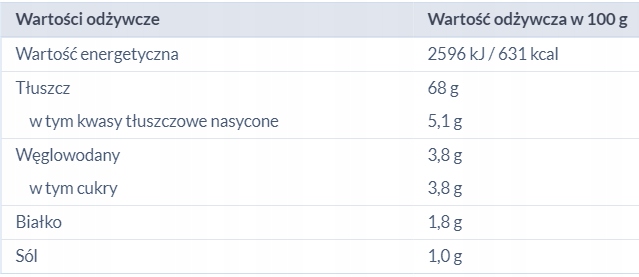 Склад: ріпакова олія 65%, вода, гірчиця (спиртовий оцет, вода, гірчичне борошно, сіль, екстракт спецій), яєчний жовток порошок 3,2%, цукор, загусники: гуарова камедь, ксантанова камедь .