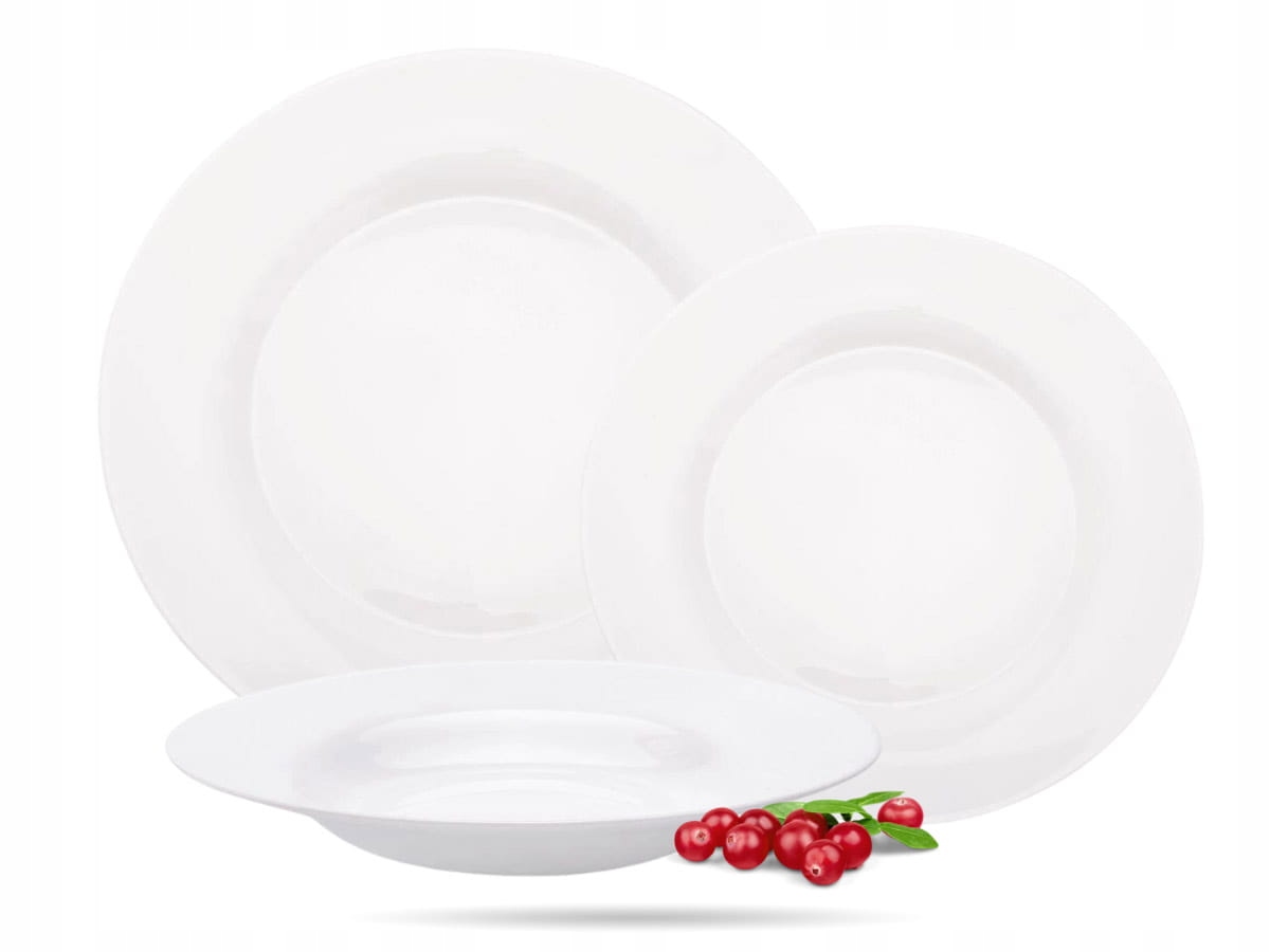 Сервіз, де можна подати різноманітні страви для всієї родини. Білі гладкі тарілки, легкі та міцні, із загартованого скла.
