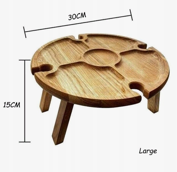 дуже зручний винний стіл, для зустрічей у невеликій компанії або для романтичного вечора на двох. Стіл мобільний, його можна розмістити за столом у їдальні, у вітальні на дивані, на підлозі біля каміна або в спальні на ліжку. Влітку це буде чудово працювати на пікніку. Варге Вечірні зустрічі на ганку, з келихом вина та закусками на нашому столі. Це також чудово, як стіл для сніданку. Продукт виготовлений з дубової деревини. Представлений продукт є овальним, для вина для 4 склянок. Ноги столу складені, що полегшує зберігання та транспорт. Кожна таблиця унікальна, кожне полотно має свою структуру та унікальний малюнок.