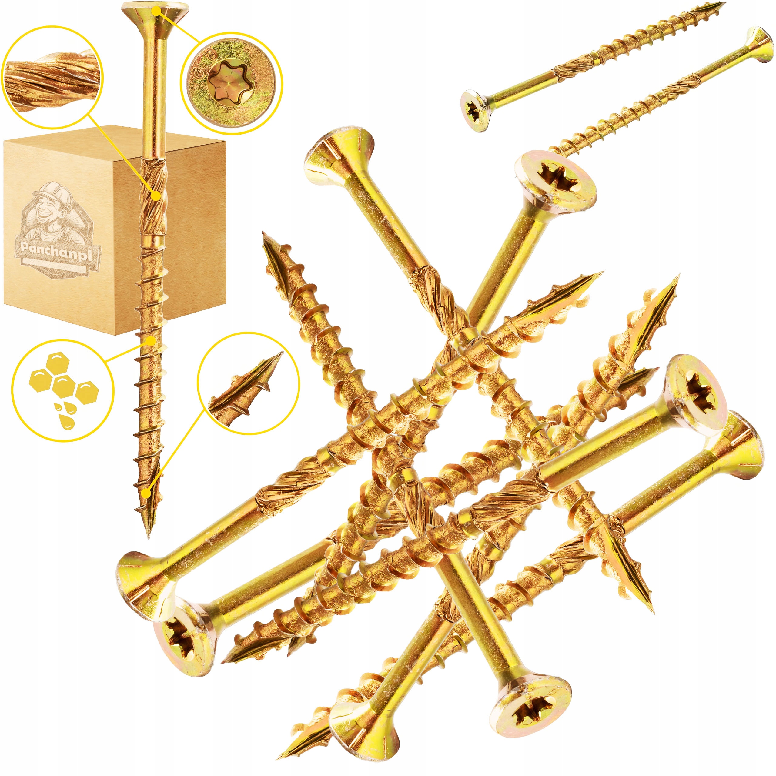 ⭐ Деревина торкнулася гвинта з зубчастою ниткою та розеткою Torx - Panchanpl ⭐