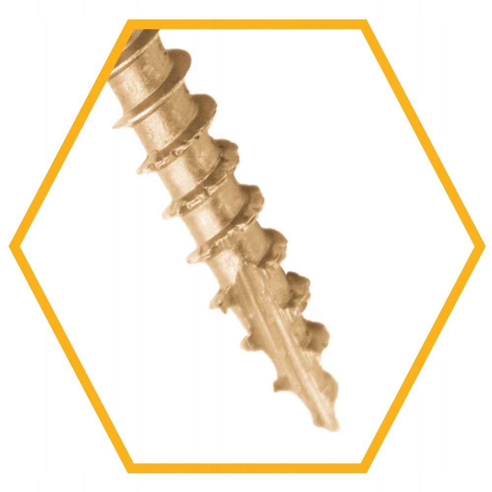 4 Їх унікальний дизайн характеризується постійною та певною установкою в дереві. Недбав нитки, призначена для того, щоб вона могла краще проникнути і залишатися в дерев’яній конструкції. Зуби на нитці, коли накручують дерев’яні волокна, що змушує її проникати глибше і зберігається більше, ніж традиційні гвинти. Конструкція гвинта робить їх відносно легкими для викручування або з електричними інструментами.Технічні параметри