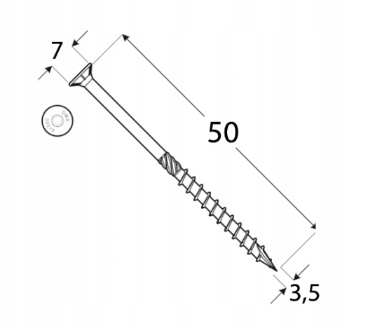 провідні гвинти для деревини 3,5х50 з конічною головкою 200 шт.