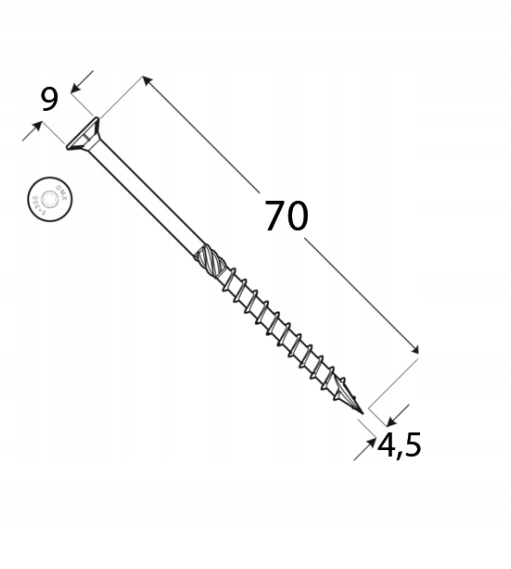 провідники для деревини 4,5x70 з конічною головкою 200 шт.