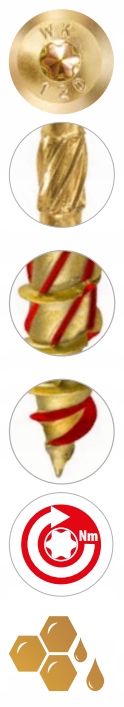 - ВОСКОВЕ ПОКРИТТЯЗавдяки спеціальному восковому покриттю, нанесеному під час виробничого процесу, крутний момент загвинчування значно зменшився. Це робить установку швидшою, легшою та зменшує споживання енергії в інструментах, що живляться від батареї.