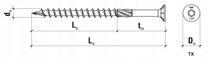 Конструкційний гвинт з конічною головою та TX 8 x 120 мм розетка