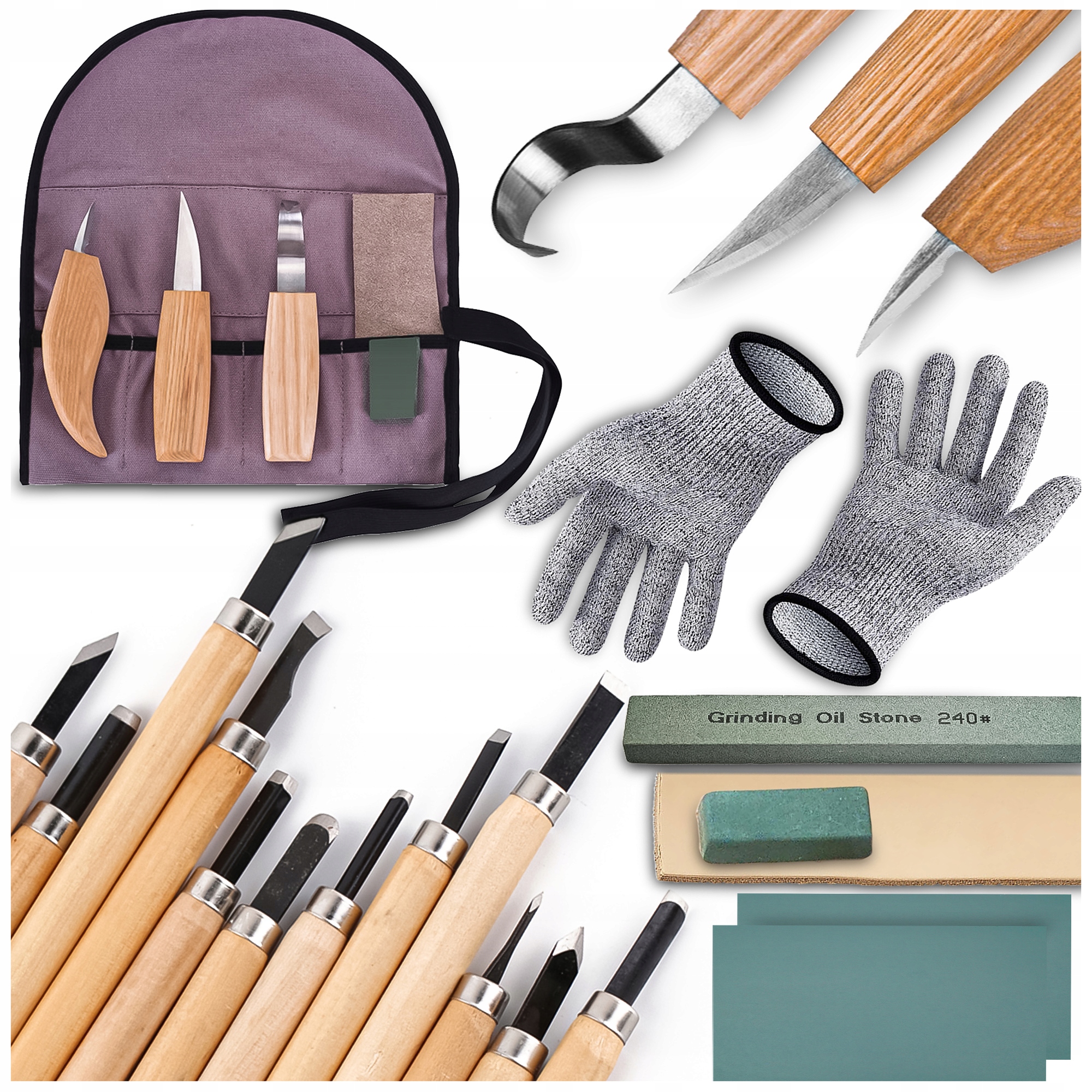 СТОЛЯРНІ ІНСТРУМЕНТИ 22 ЕЛ. НАБІР ДЛЯ РІЗЬБЛЕННЯ ПО ДЕРЕВУ ФУТЛЯР ЗУБИЛА НОЖІ