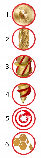 Інноваційний дизайн гвинтів робить роботу з ними суцільним задоволенням. Вони не вимагають попереднього свердління. Глибоке та стійке гніздо TORX ефективно передає крутний момент без ефекту вискакування біта.