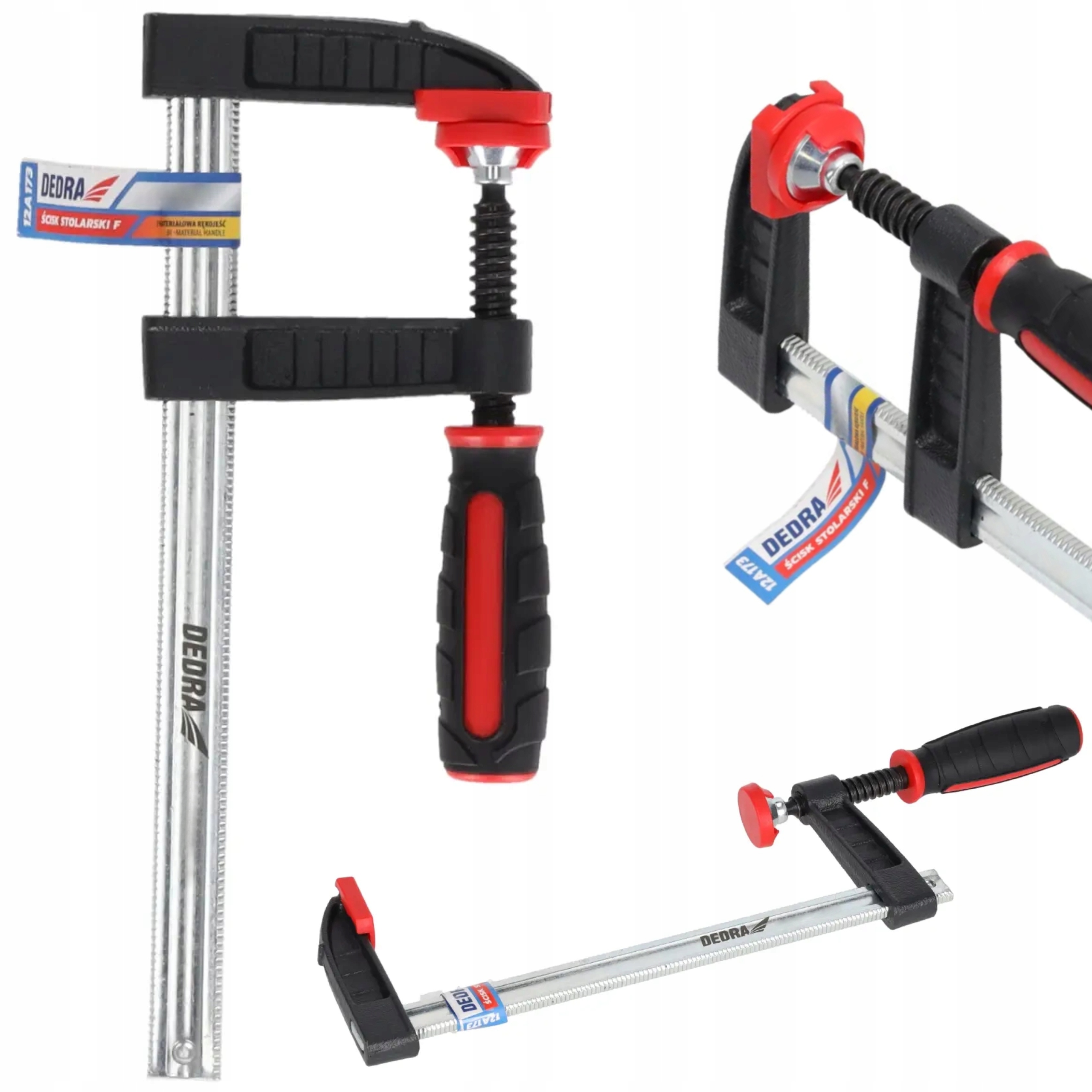 Столярний затискач типу F DEDRA 12A180 — це інструмент, який ідеально підходить для кріплення та утримання таких матеріалів, як дерево, ДСП, фанера та пластик.