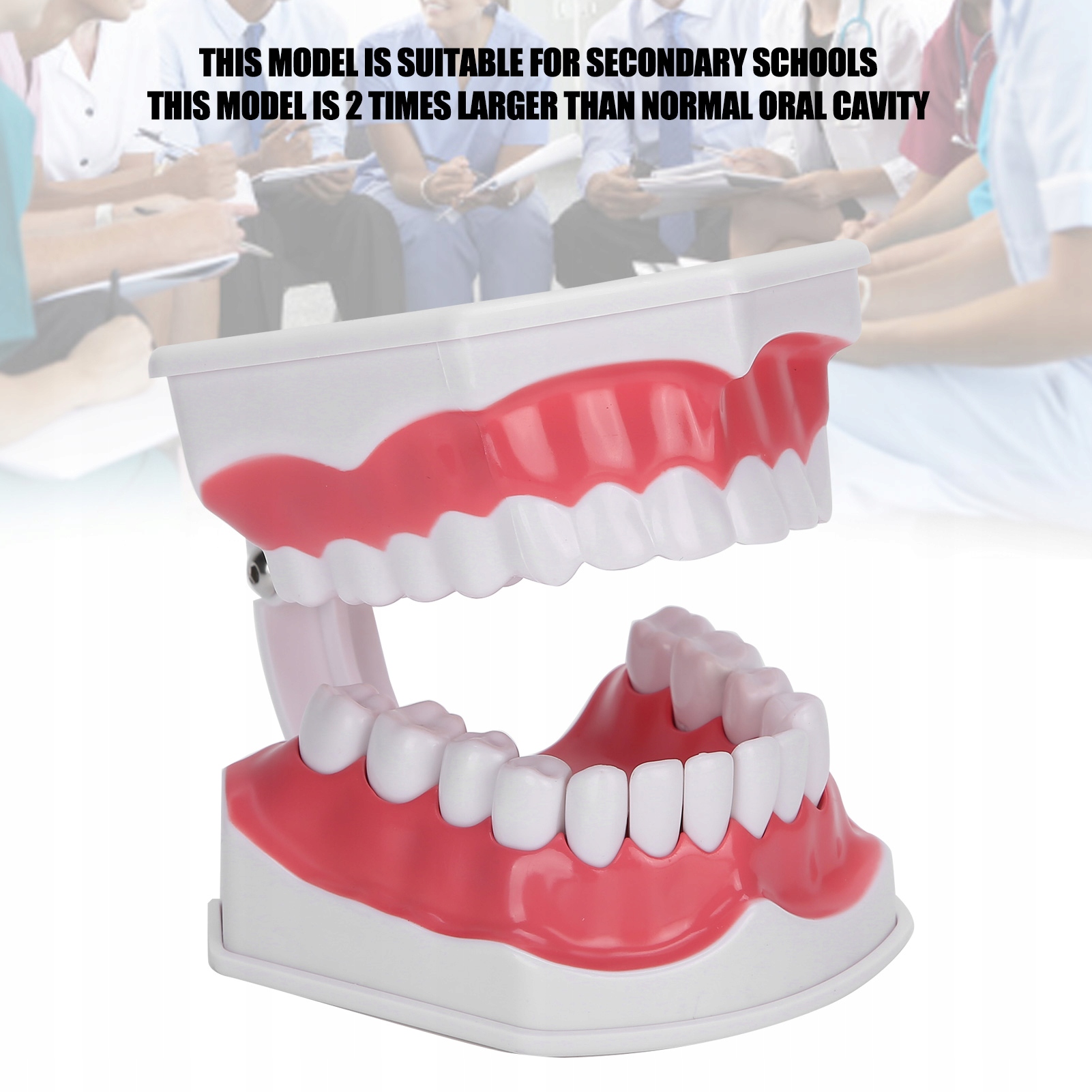 1 . Ця модель в 2 рази більша за звичайний рот. Розмір цієї моделі 12 x 12 x 9 см / 4,7 x 4,7 x 3,5 дюйма. Він складається з 28 постійних зубів, які розташовані по всій ротовій порожнині.