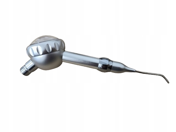 Стоматологічний піскоструминний апарат, встановлений на роз'єм Borden. Має знімну головку. Підходить для стерилізації в автоклаві. Піскоструминний апарат оснащений зворотним клапаном, який запобігає зворотному витікання порошку в гільзу. Міцно виготовлений з якісних матеріалів. Сталевий корпус.
