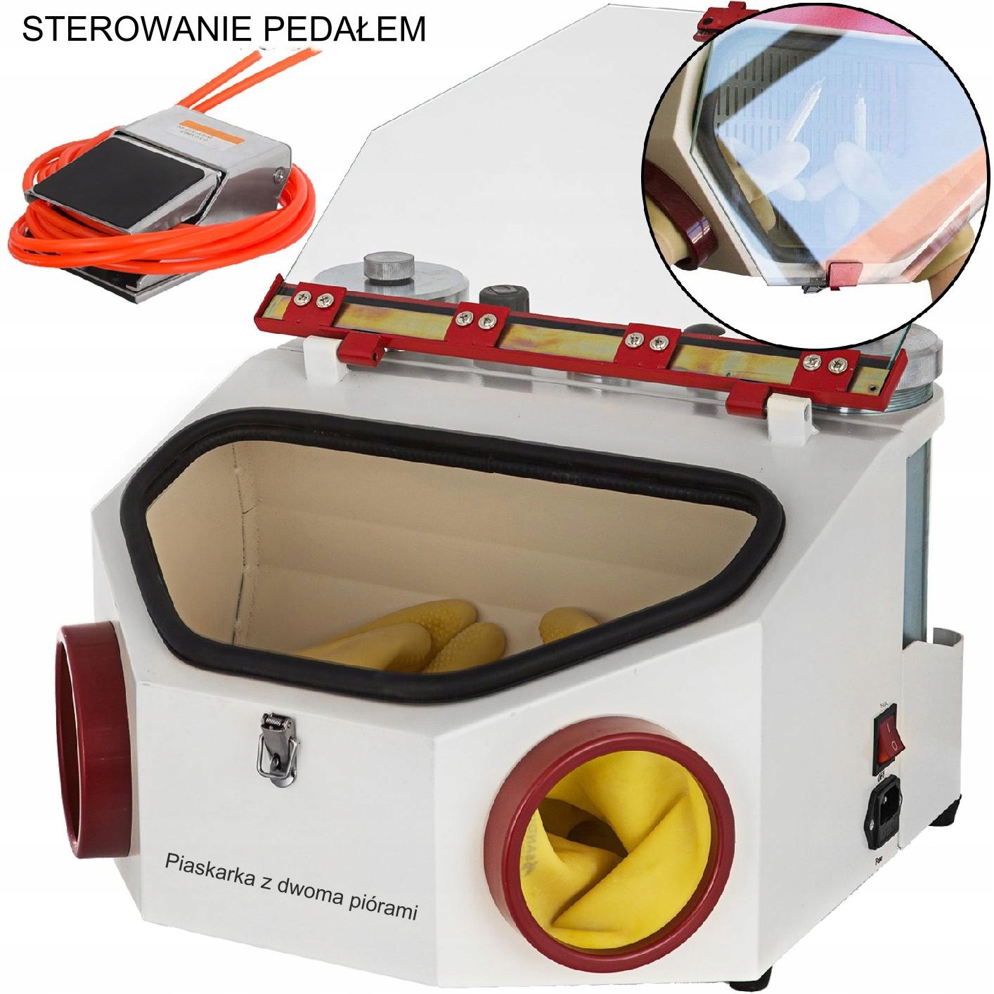 Просторий робочий простір із поперечним діаметром 43 см значно полегшує роботу. Крім того, піскоструминний апарат оснащений ножною педаллю, яка полегшує керування апаратом.