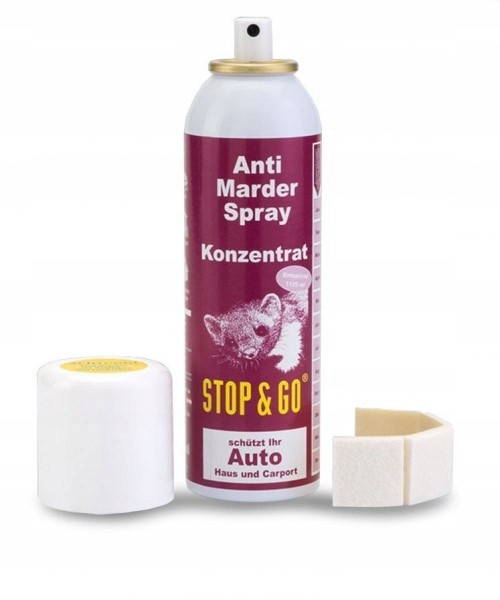 Спрей-репелент Mart. Стійкий концентрат випромінює запах, сприйманий куницями як «небезпечний ворог». Не потрібно обприскувати великі поверхні всіх відкритих елементів. Просто нанесіть спрей на додані «ароматні пластини», які можна просто наклеїти та регулярно обприскувати концентратом аромату. Універсальний спрей для використання в автомобілі, будинку, саду чи навісі.