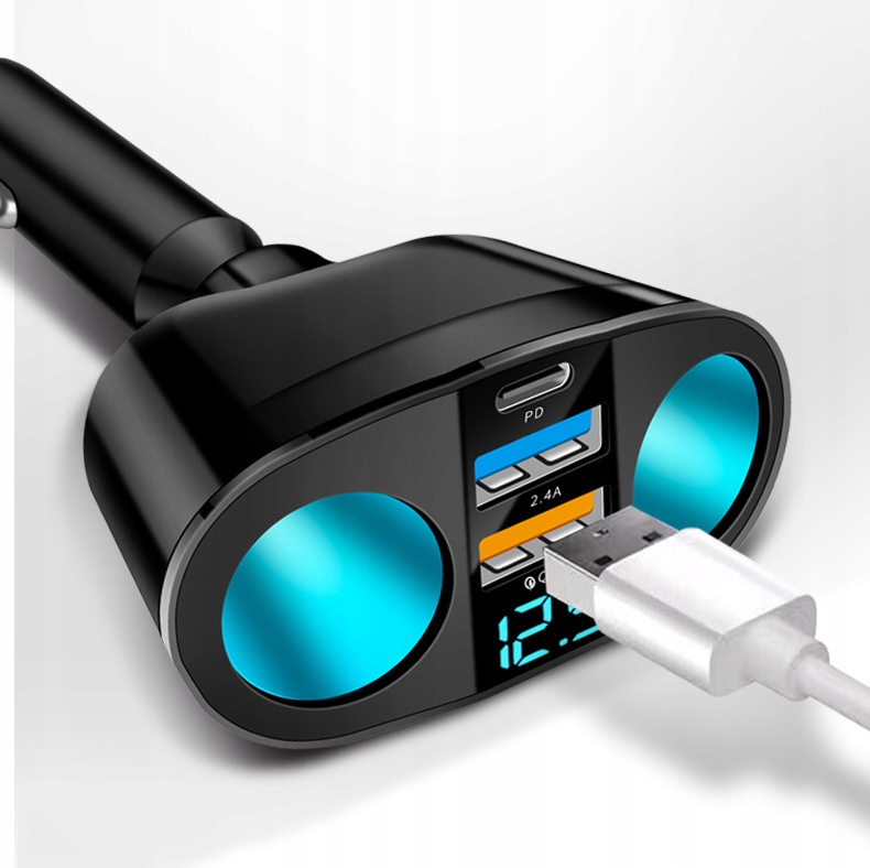 ✅Автомобільний адаптер «П’ять в одному» 12 В: Подвійна розетка 12 В підтримує 5 пристроїв, які потрібно заряджати одночасно, а гніздо прикурювача обладнано 2 роз’ємами прикурювача + портом USB 2.4 A + портом швидкої зарядки USB 3.0 QC + портом PD. Загальна потужність розподільника автомобільного прикурювача може досягати 120 Вт, що ідеально відповідає вашому GPS, реєстратору водіння, супутниковій навігації, обігріву сидінь, радіатору тощо.