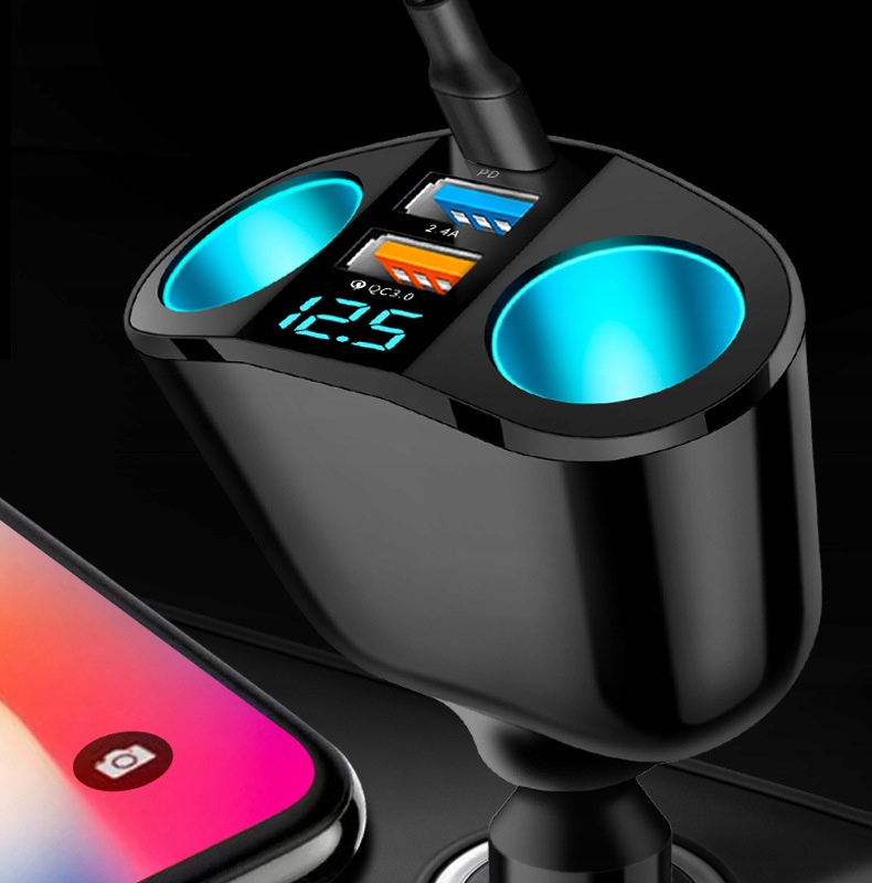 Цей багатофункціональний автомобільний зарядний пристрій розроблено спеціально для транспортних засобів, таких як легкові автомобілі, вантажівки та позашляховики, і підходить для заряджання різних електронних пристроїв, таких як смартфони, планшети, відеореєстратори, навігаційні пристрої тощо, які відповідають вашим потребам. різні потреби в електроенергії під час водіння.