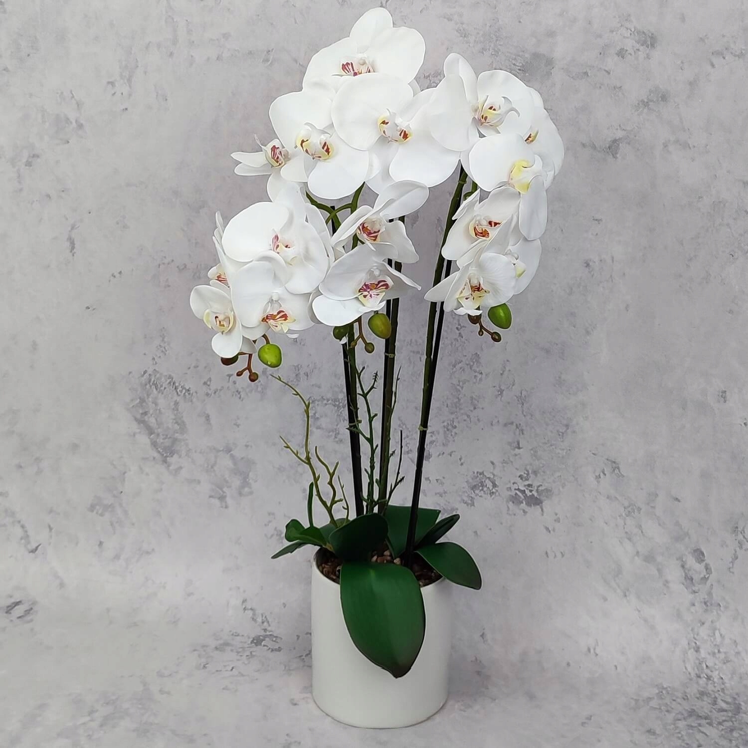 STORCZYK BIAŁY sztuczny w doniczce 3 pędy biała ORCHIDEA ceramiczna donica