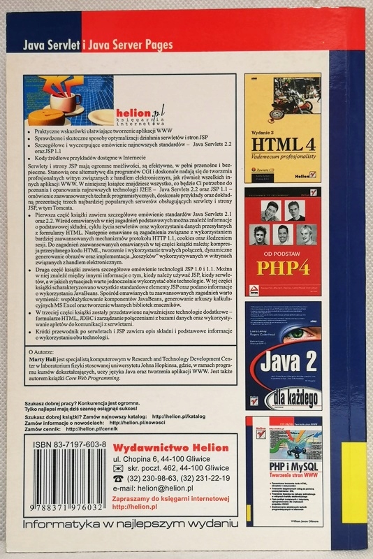 Ця книга призначена для реальних програмістів. Його мета - не представляти потенціал онлайн -торгівлі або способів, за допомогою яких веб -додатки можуть революціонізувати компанію. Це практична книга для програмістів, які вже ідеально розуміють, наскільки важливо створити динамічні веб -сайти. Завдання цієї книги - представити правильний спосіб проведення такої роботи. Представляючи методи створення динамічних веб -сайтів, автор намагався врахувати найважливіші використовувані методи та описати найпоширеніші проблеми. У той же час було представлено багато практичних застосувань (наприклад - понад сто класів Яви). Детальні приклади були наведені для всіх найважливіших та найчастіше використовуваних можливостей, а також резюме також показали, що демонструють рідше використовуватися та вказані в Інтернеті джерела інформації про інтерфейси програмування (API), що дозволяє використовувати ці найменш використовувані можливості.
