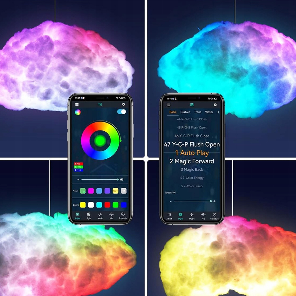 - Цей райдужний хмарний ліхтар — ідеальний подарунок для дітей, який неодмінно порадує їх різними світловими ефектами. Керований дистанційним керуванням і додатком, він дозволяє змінювати колір світла та синхронізувати його з ритмом музики.