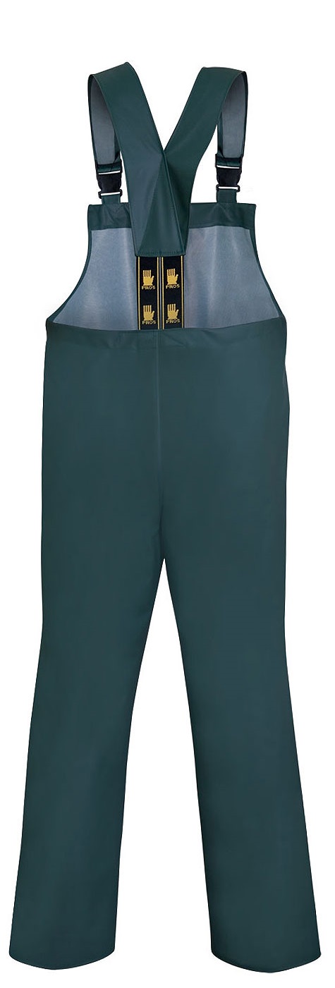 Одяг, що складається з куртки з капюшоном, що застібається на кнопки, і комбінезону з регульованими підтяжками та широкою гумкою на спина. Модель виготовлена з водонепроникної тканини Plavitex, призначена для використання в несприятливих погодних умовах. Забезпечує ефективний захист від вітру та дощу. Технологія двостороннього зварювання підвищує міцність швів. Продукт відповідає нормам європейських стандартів: EN ISO 13688 та EN 343.