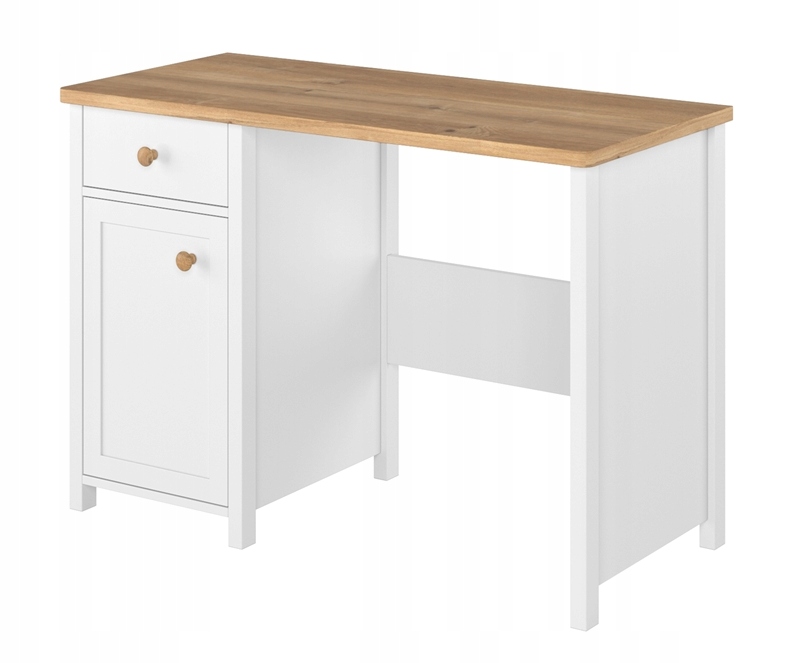 Історія SO-03письмовий стіл із шафою та ящиком у поєднанні з блоком легко перетворюється на секретер із додатковим місцем для зберігання шкільних речей або туалетний столик мрії дівчат. Меблі виготовлені з міцної ламінованої плити з обробкою кромкою ABS. Пластикові ручки.