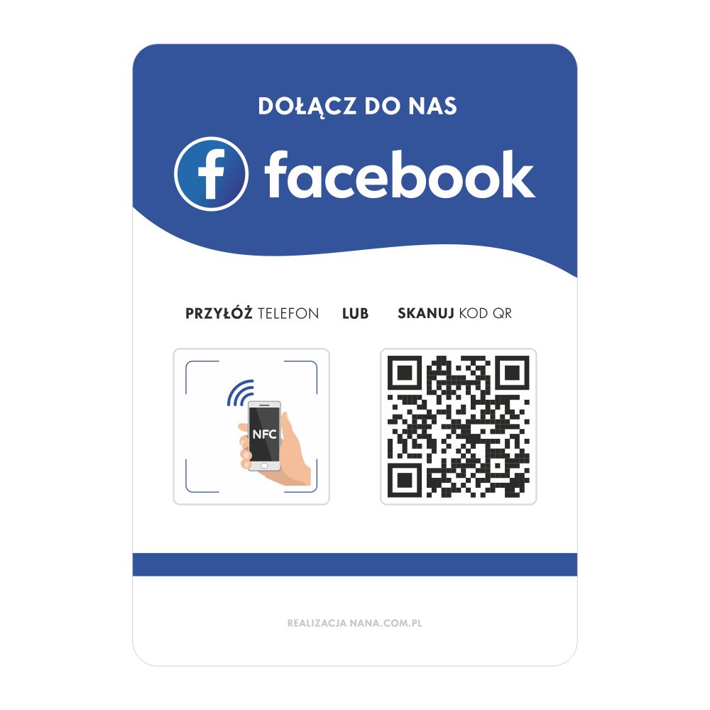 Таблиця з NFC і QR-кодом FACEBOOK доступна в трьох варіантах.